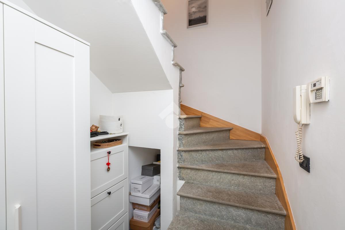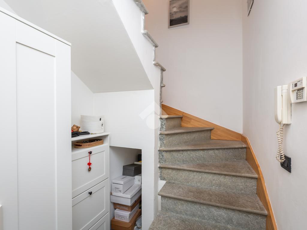 Al suo interno, l'appartamento è composto da un ingresso al primo livello, con scala in muratura. Al secondo livello due locali: il soggiorno con ampia finestra, dotato di camino funzionante che crea un'atmosfera accogliente, ideale per momenti di relax. La cucina abitabile, dotata di mobilio moderno, gode di porta finestra che da accesso al terrazzino. Un primo servizio, con box doccia e velux che lo rende molto luminoso.
