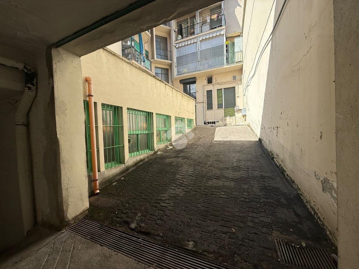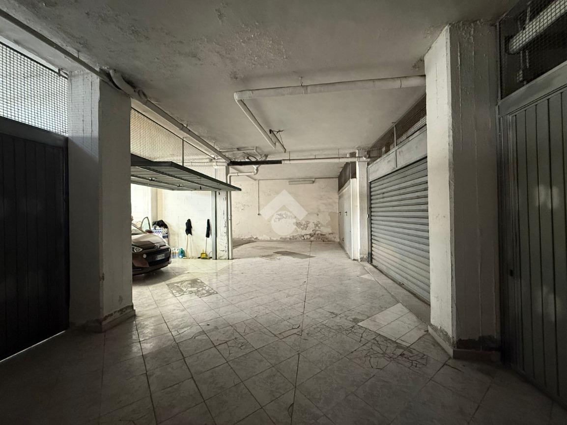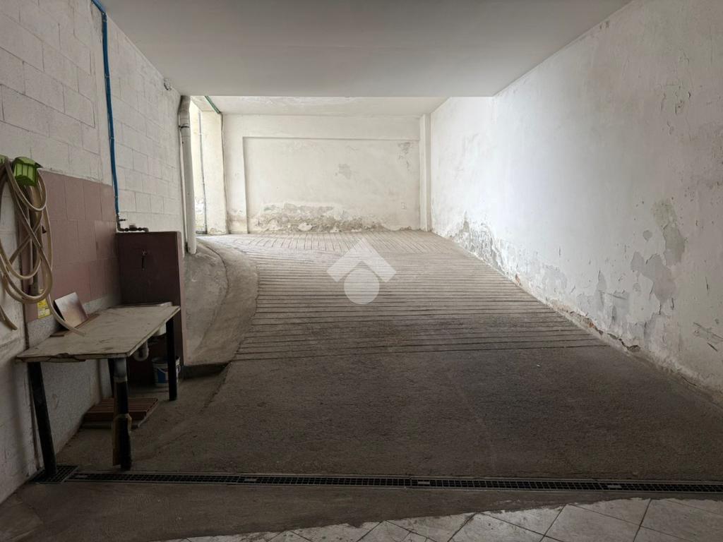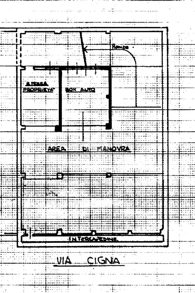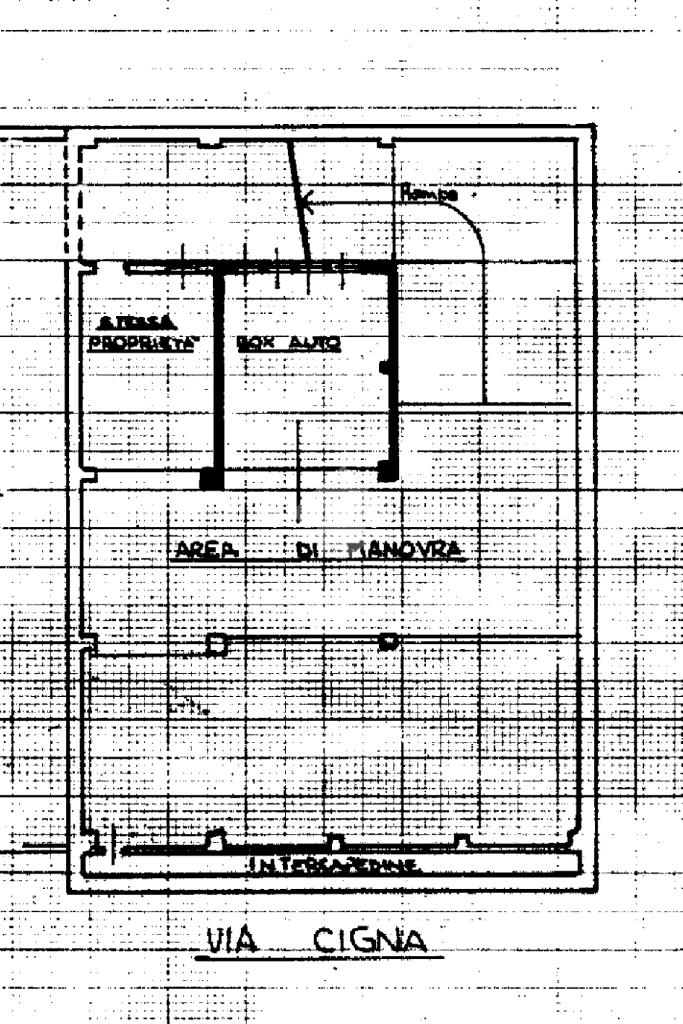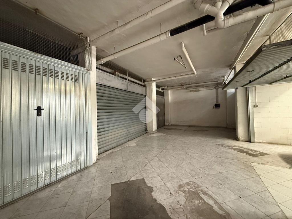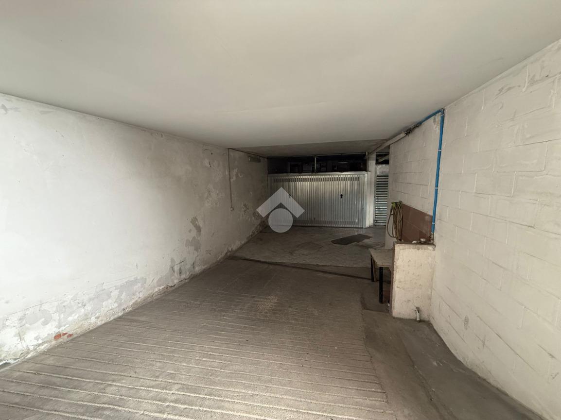 angolo Via Pesaro, all'interno di un decoroso condominio degli anni '60 proponiamo in vendita al piano seminterrato con comoda rampa di accesso, box auto di 23 mq, con portone basculante.